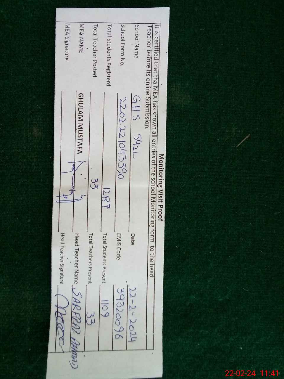 | EMIS Code: 39320096 | Name of School: GHS CHAK NO. 54/2-L | |||