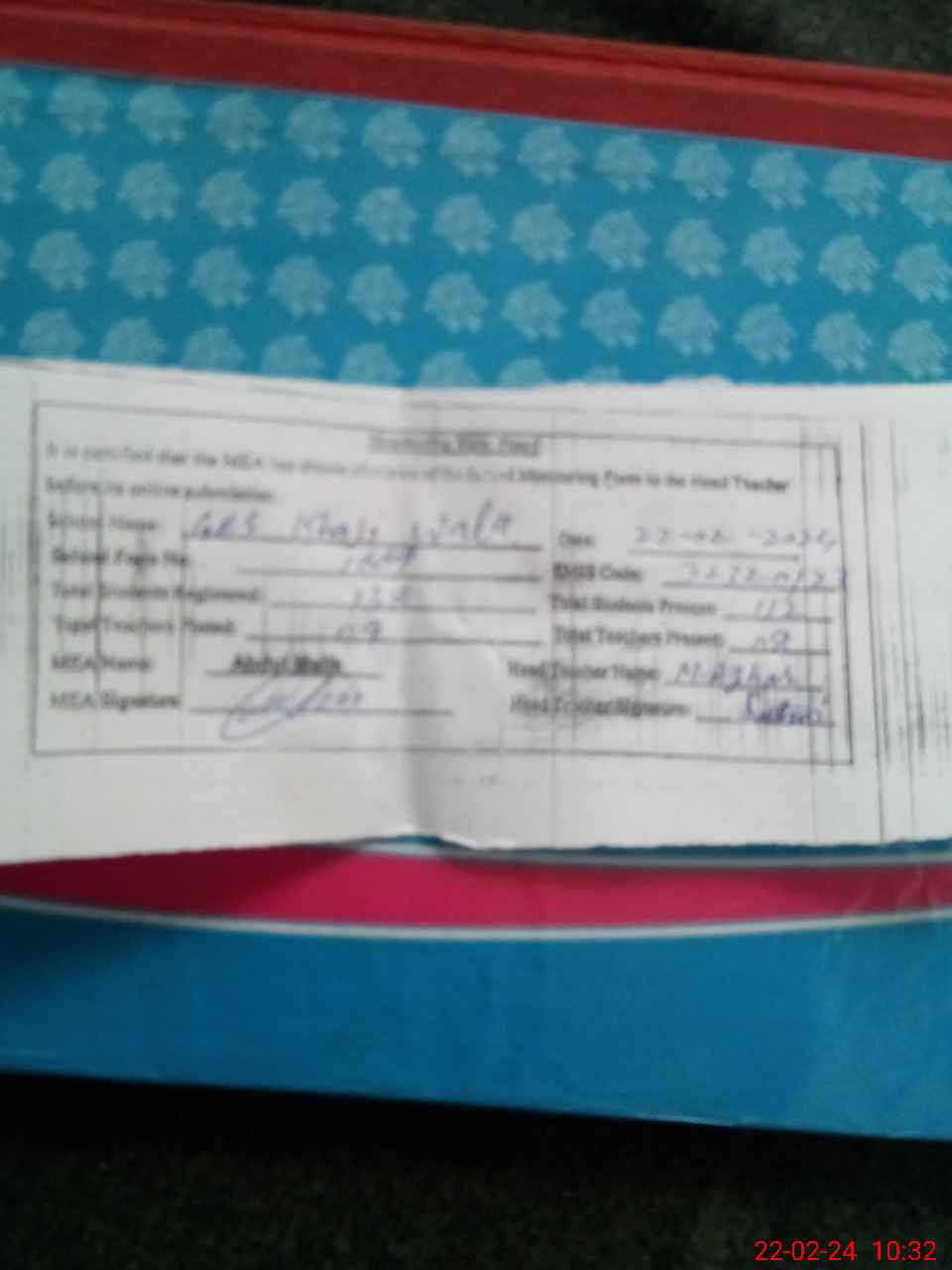 | Attendance Register | Head Teacher | MEA with School | Visit Proof |