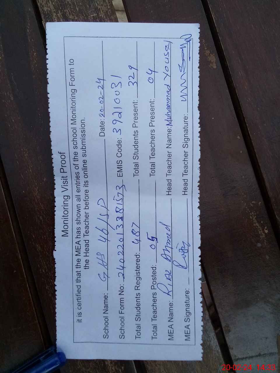| EMIS Code: 39210031 | Name of School: GHS CHAK NO. 46/SP PAKPATTAN | |||