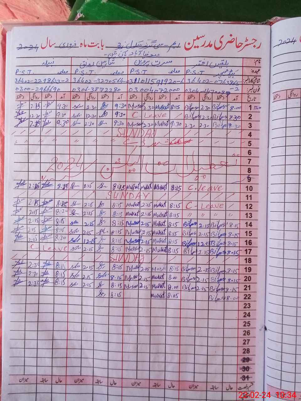 | Name: Sh**** Ro**** Designation: (School Headmaster's/Headmistress's) PST Phone/Cell Number: 03**** |