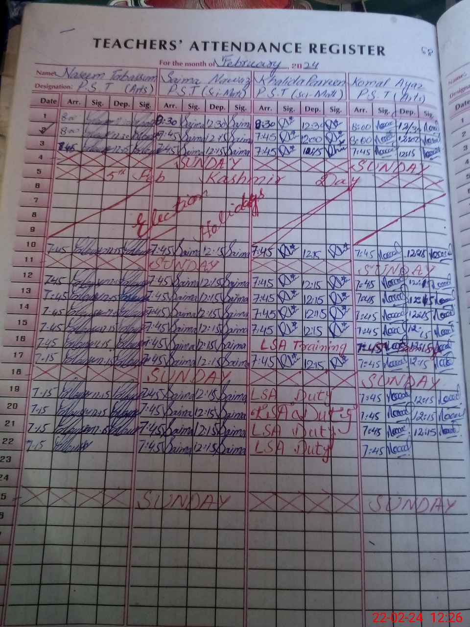 | 31**** | Kh**** Pa**** | 1 | 1 | 0 | 0 | 0 | 0 | 0 | 0 | 0 | 0 | 0 | Exam Duty |