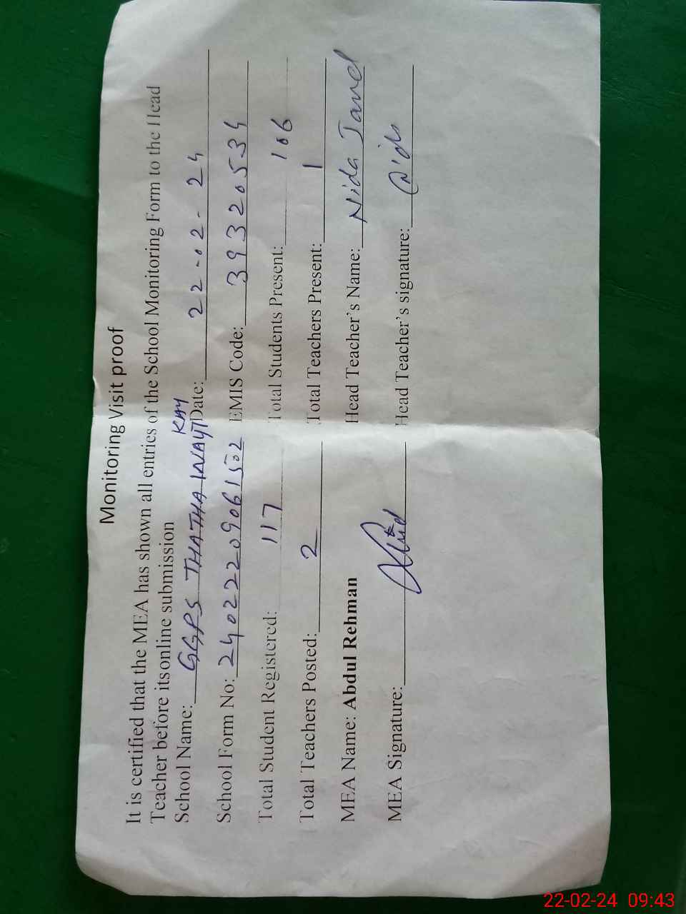 | EMIS Code: 39320534 | Name of School: GGPS THATA INAYAT KAY | |||
