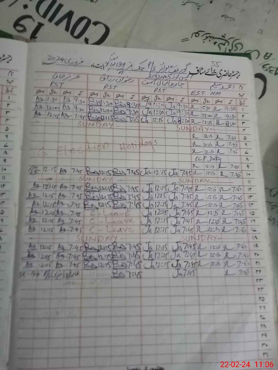 | CNIC | Full Name | Designation | R/C | Absence During Last Calender Month |