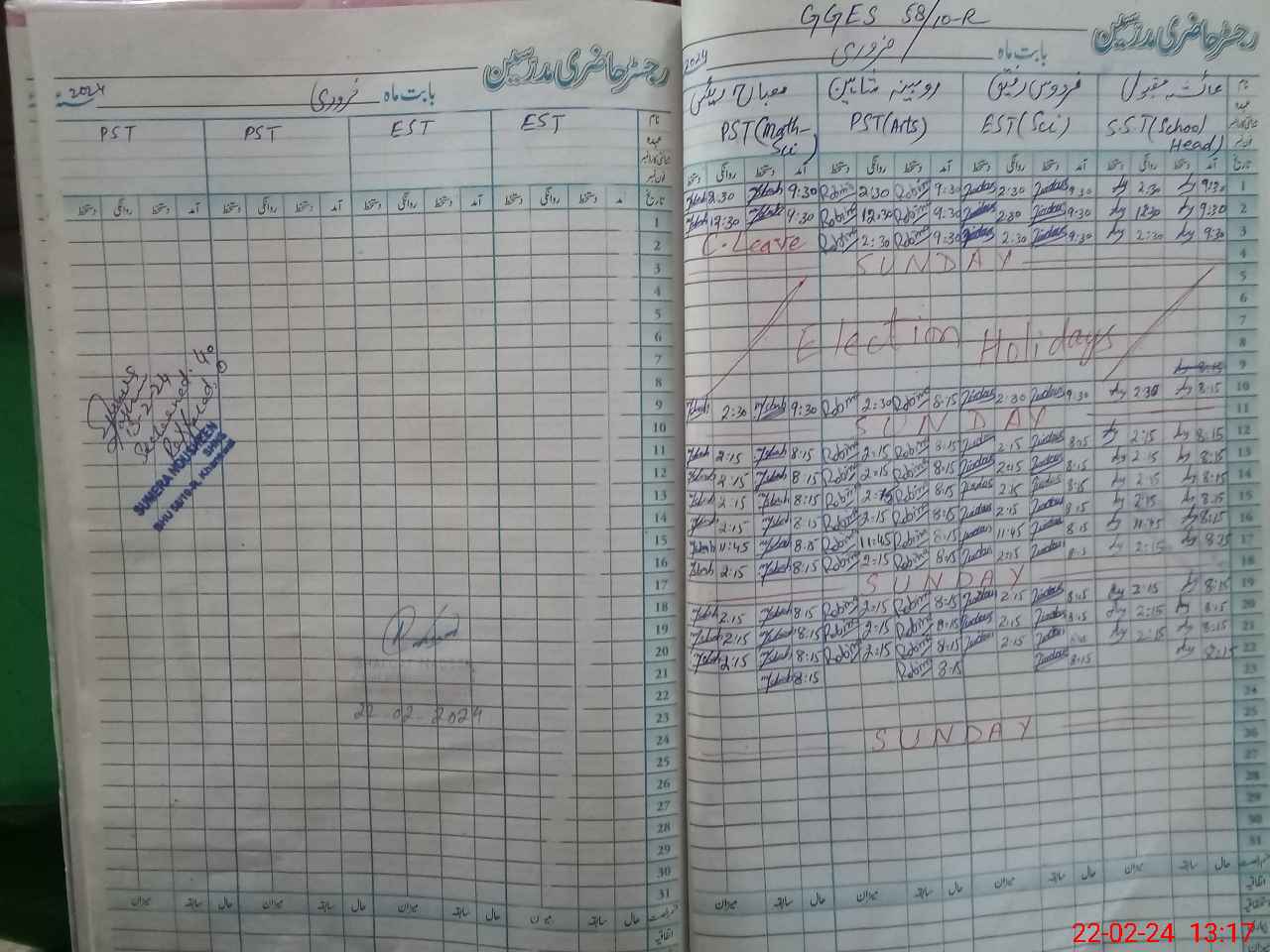| CNIC | Full Name | Designation | R/C | Absence During Last Calender Month |