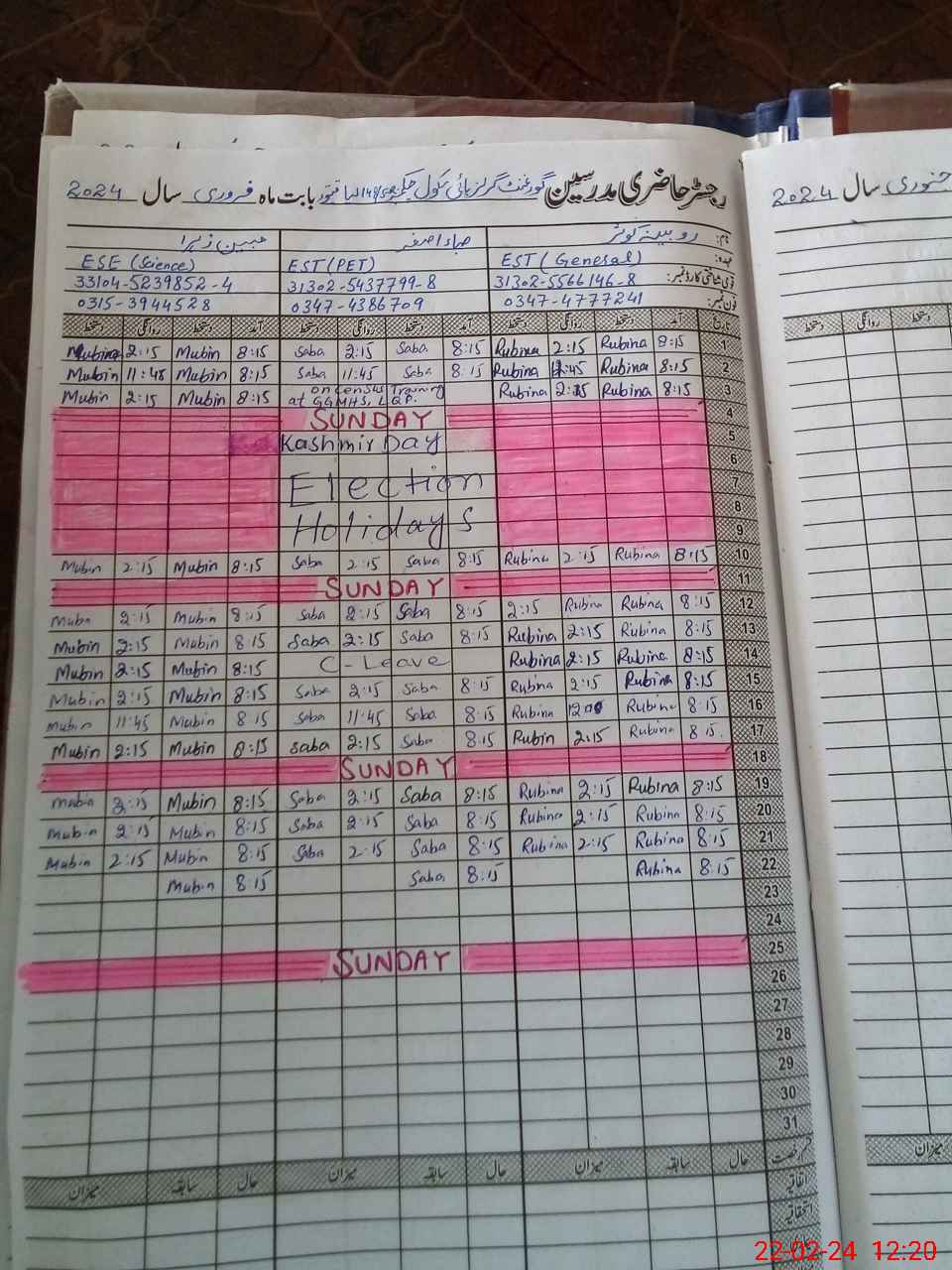 | Name: Ro**** Ko**** Designation: (School Headmaster's/Headmistress's) EST (In-charge) Phone/Cell Number: 03**** |