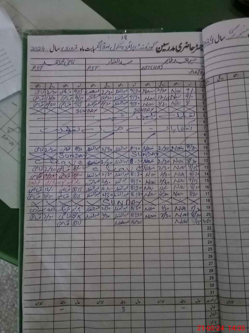 | CNIC | Full Name | Designation | R/C | Absence During Last Calender Month |