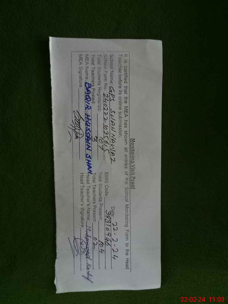 | EMIS Code: 39310946 | Name of School: GPS SHAH NAWAZ | |||