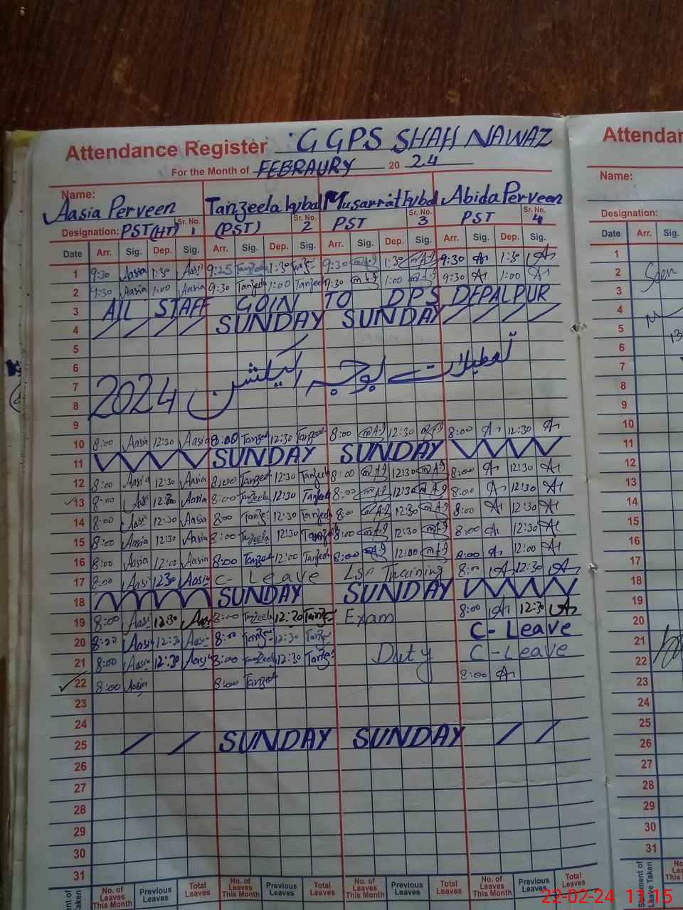 | 36**** | Mu**** Iq**** | PST | Regular | 0 | 0 | 0 | 0 | 0 | 0 | 0 | 0 | 0 | Exam Duty |