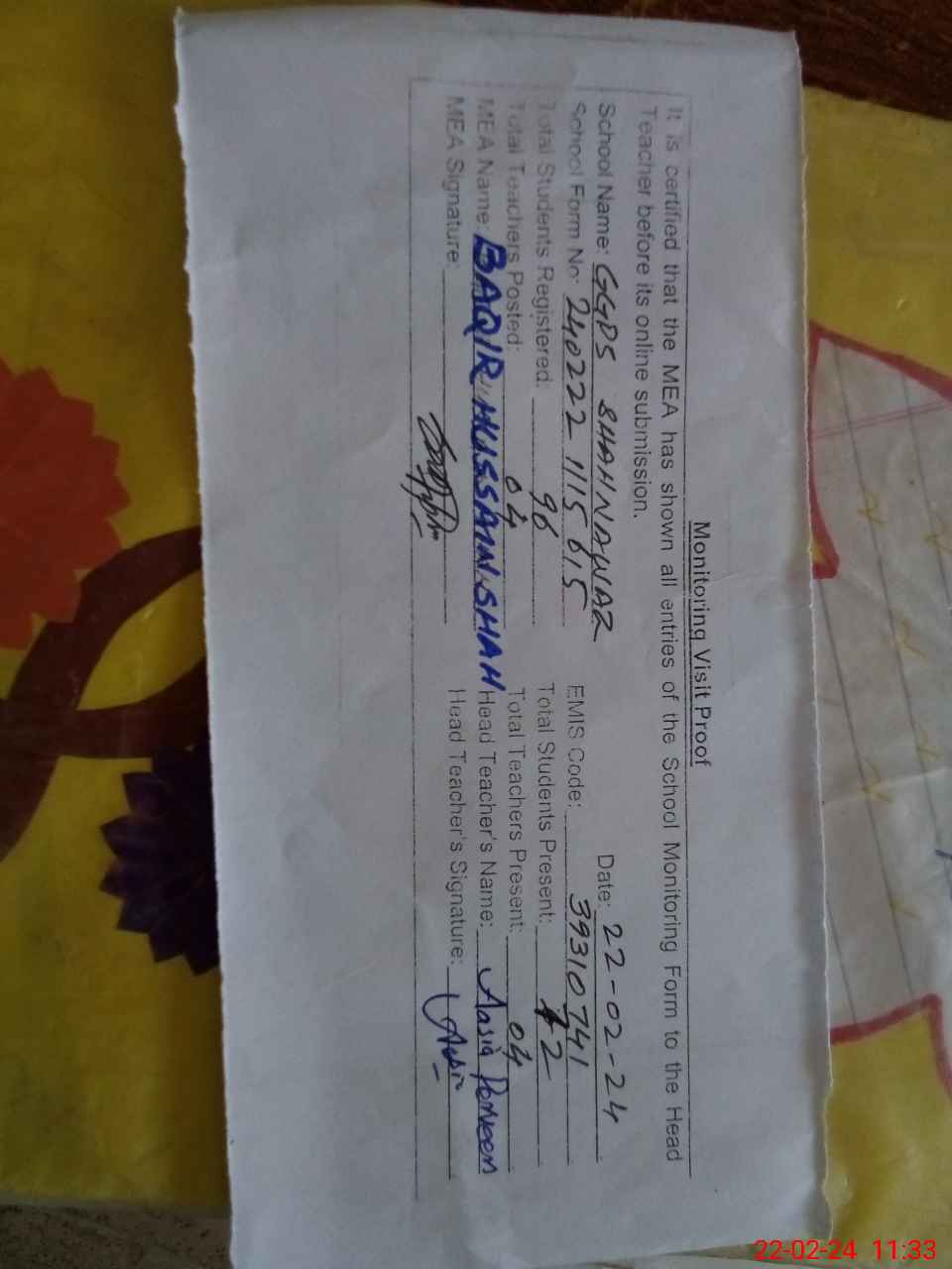 | EMIS Code: 39310741 | Name of School: GGPS SHAH NAWAZ | |||