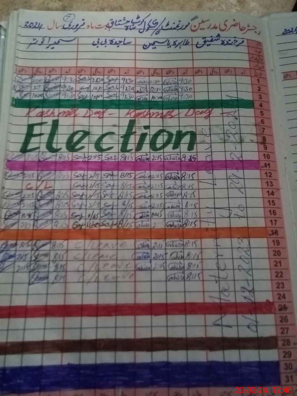 | Leave | Duty | Absent | Maternity | Medical | Ex- Pak |