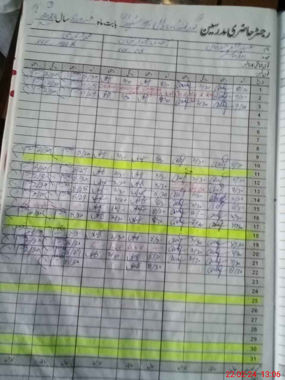 | CNIC | Full Name | Designation | R/C | Absence During Last Calender Month |