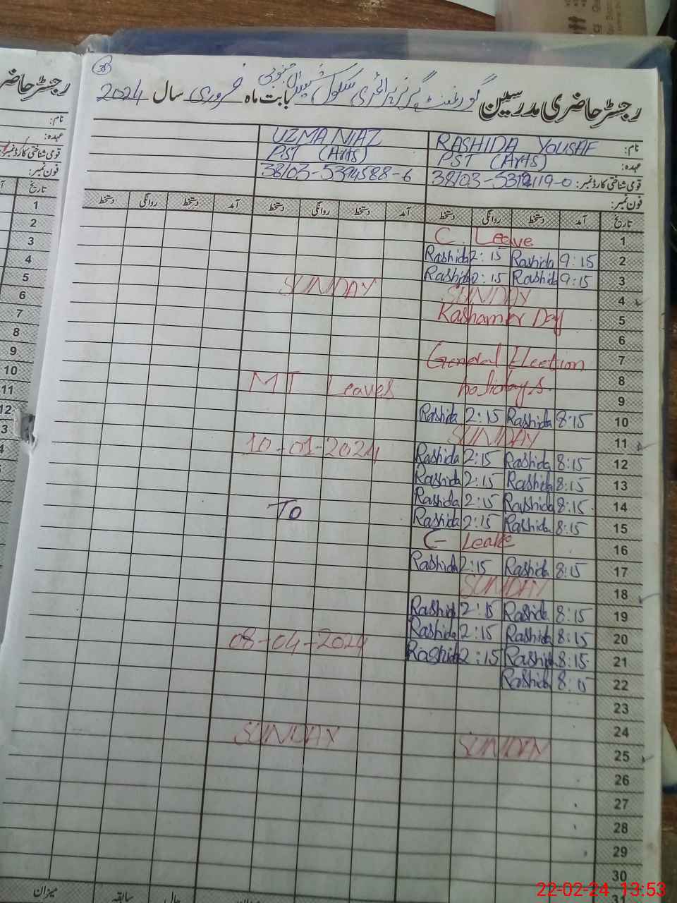 | 38**** | Uz**** Ni**** | PST | Regular | 0 | 0 | 0 | 0 | 0 | 0 | 0 | 0 | 0 | Maternity |