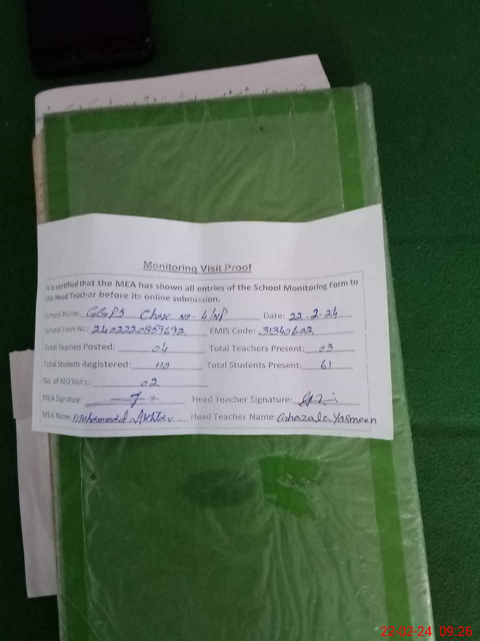 | EMIS Code: 31340602 | Name of School: GGPS CHAK NO.4/NP | |||