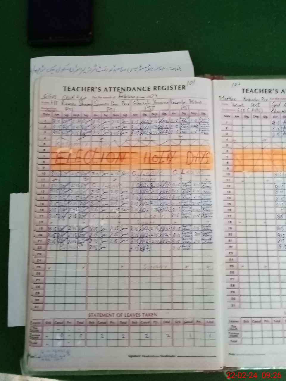 | Leave | Duty | Absent | Maternity | Medical | Ex- Pak |