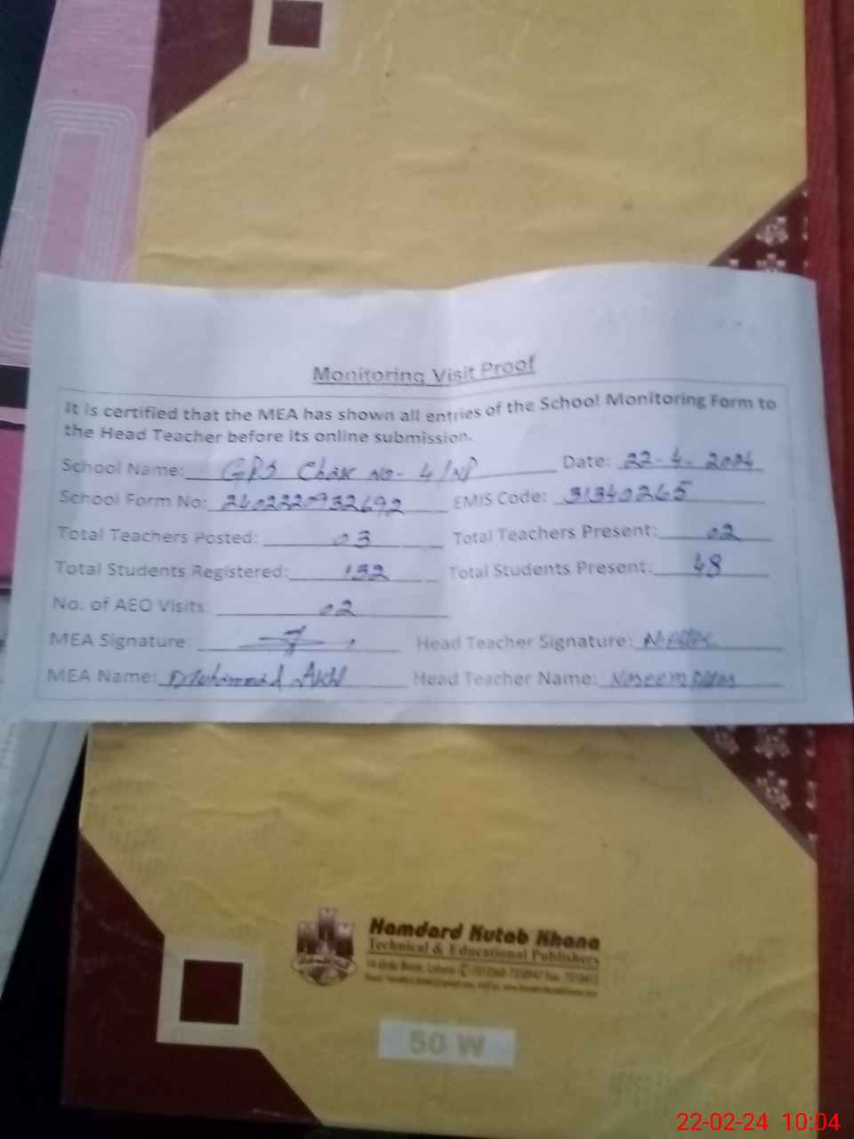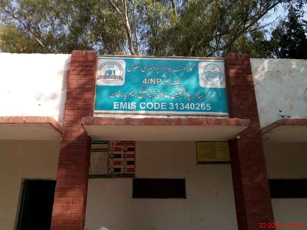 | EMIS Code: 31340265 | Name of School: GPS CHAK NO. 4/NP | |||