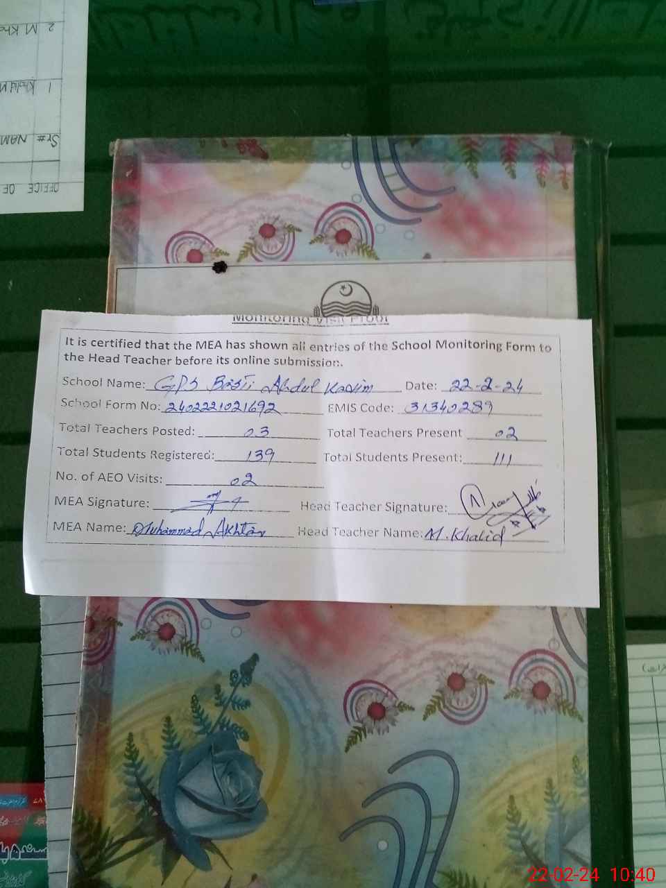 | EMIS Code: 31340289 | Name of School: GPS BASTI ABDUL KARIM | |||