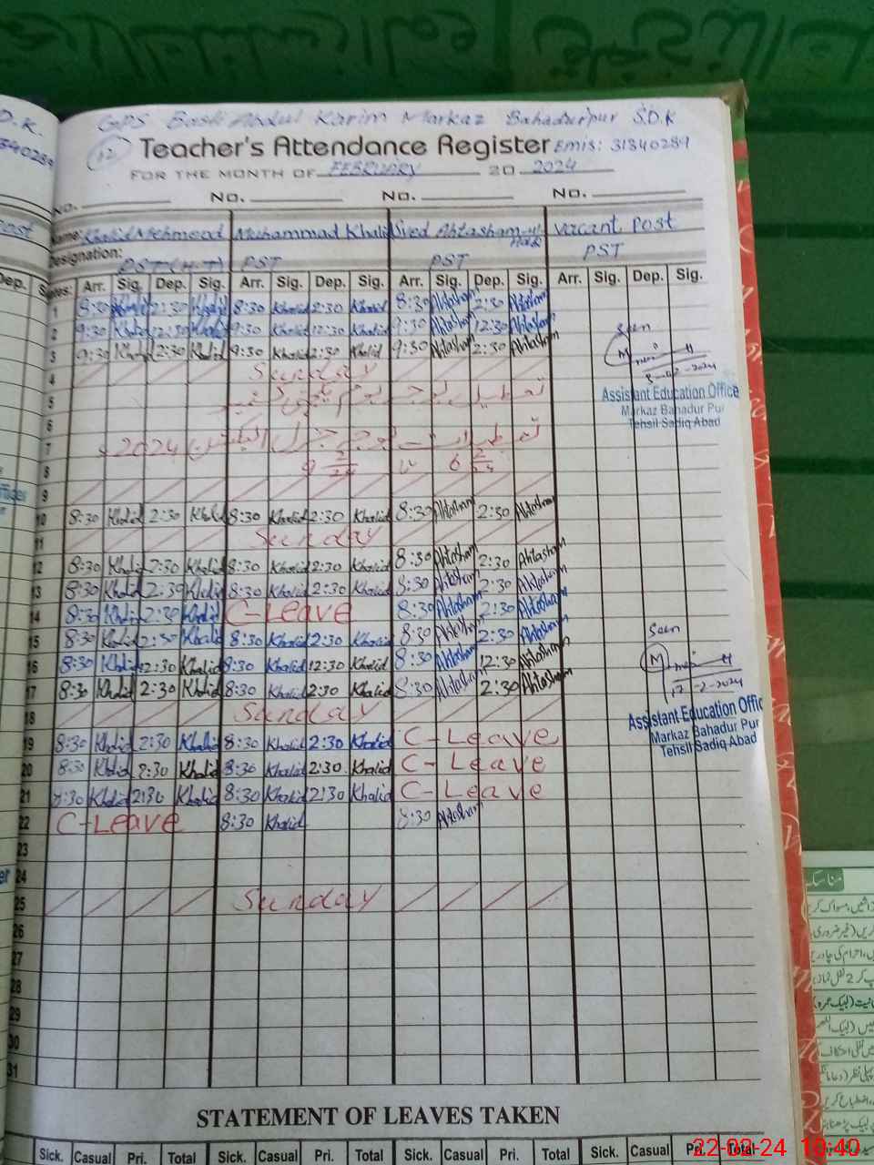 | Name: KH**** ME**** Designation: (School Headmaster's/Headmistress's) PST Phone/Cell Number: 03**** |