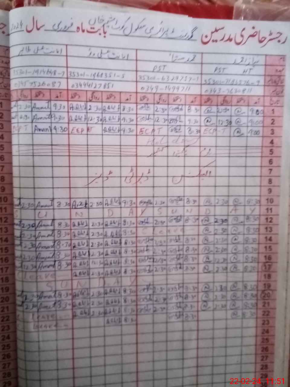 | Name: NI**** AH**** Designation: (School Headmaster's/Headmistress's) PST Phone/Cell Number: 03**** |