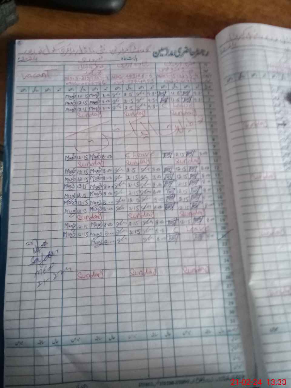 | CNIC | Full Name | Designation | R/C | Absence During Last Calender Month |
