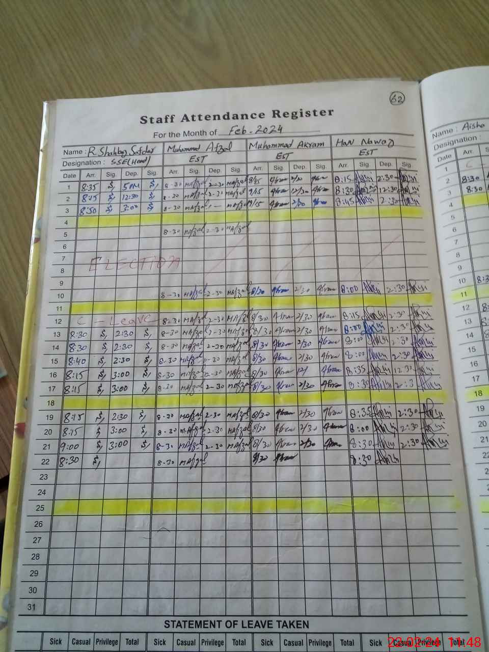 | 38**** | Ha**** Ul**** Kh**** | EST(GENERAL) | Temporary | 0 | 0 | 0 | 0 | 0 | 0 | 0 | 0 | 0 | Casual |