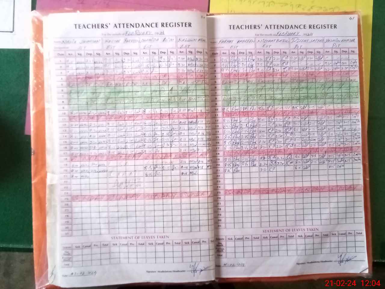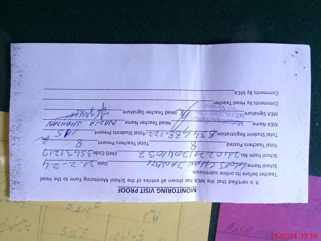 | Attendance Register | Head Teacher | MEA with School | Visit Proof |