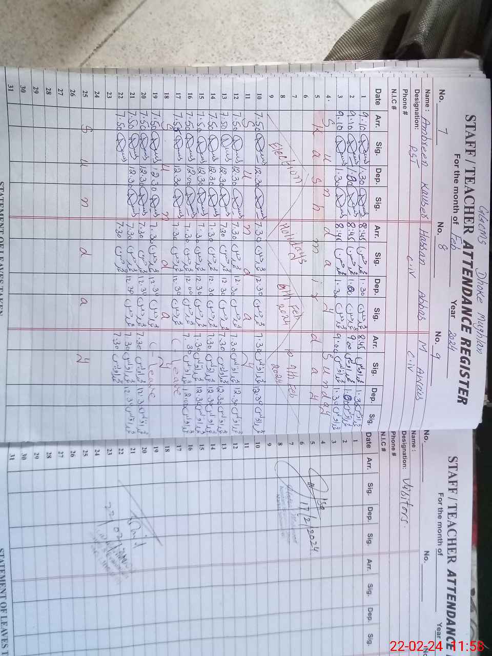 | CNIC | Full Name | Designation | R/C | Absence During Last Calender Month |