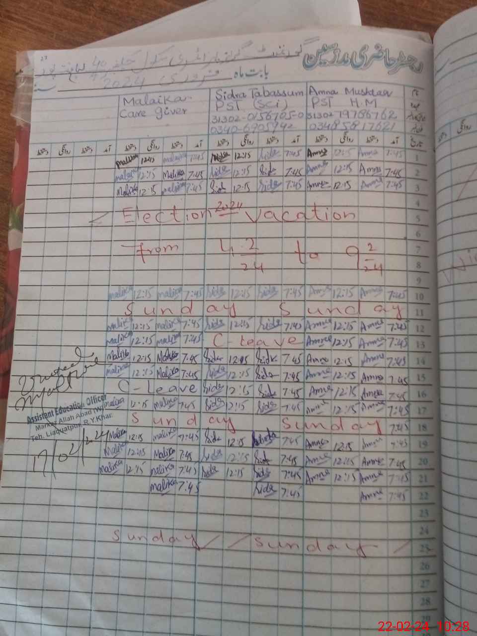 | Name: AM**** MU**** Designation: (School Headmaster's/Headmistress's) PST Phone/Cell Number: 03**** |