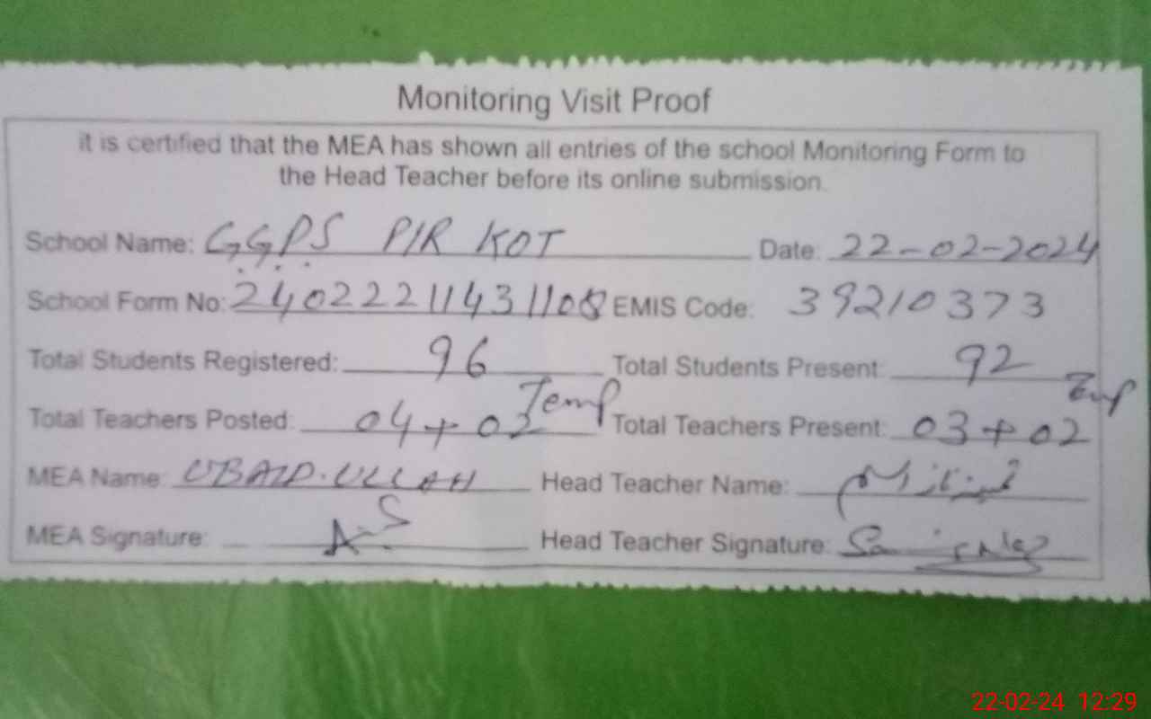 | EMIS Code: 39210373 | Name of School: GGPS MC NO. 3 PIR KOT PAKPATTAN | |||