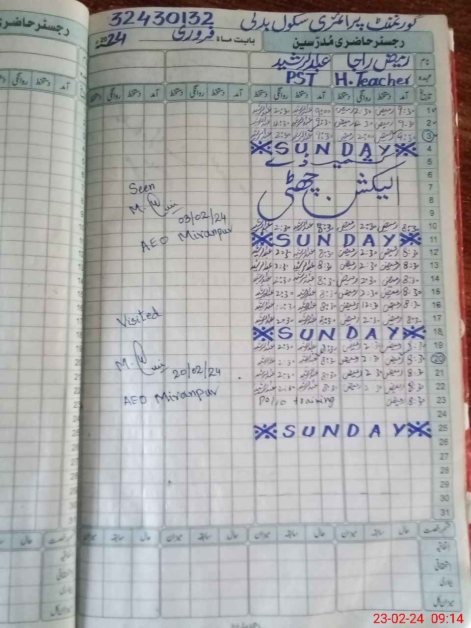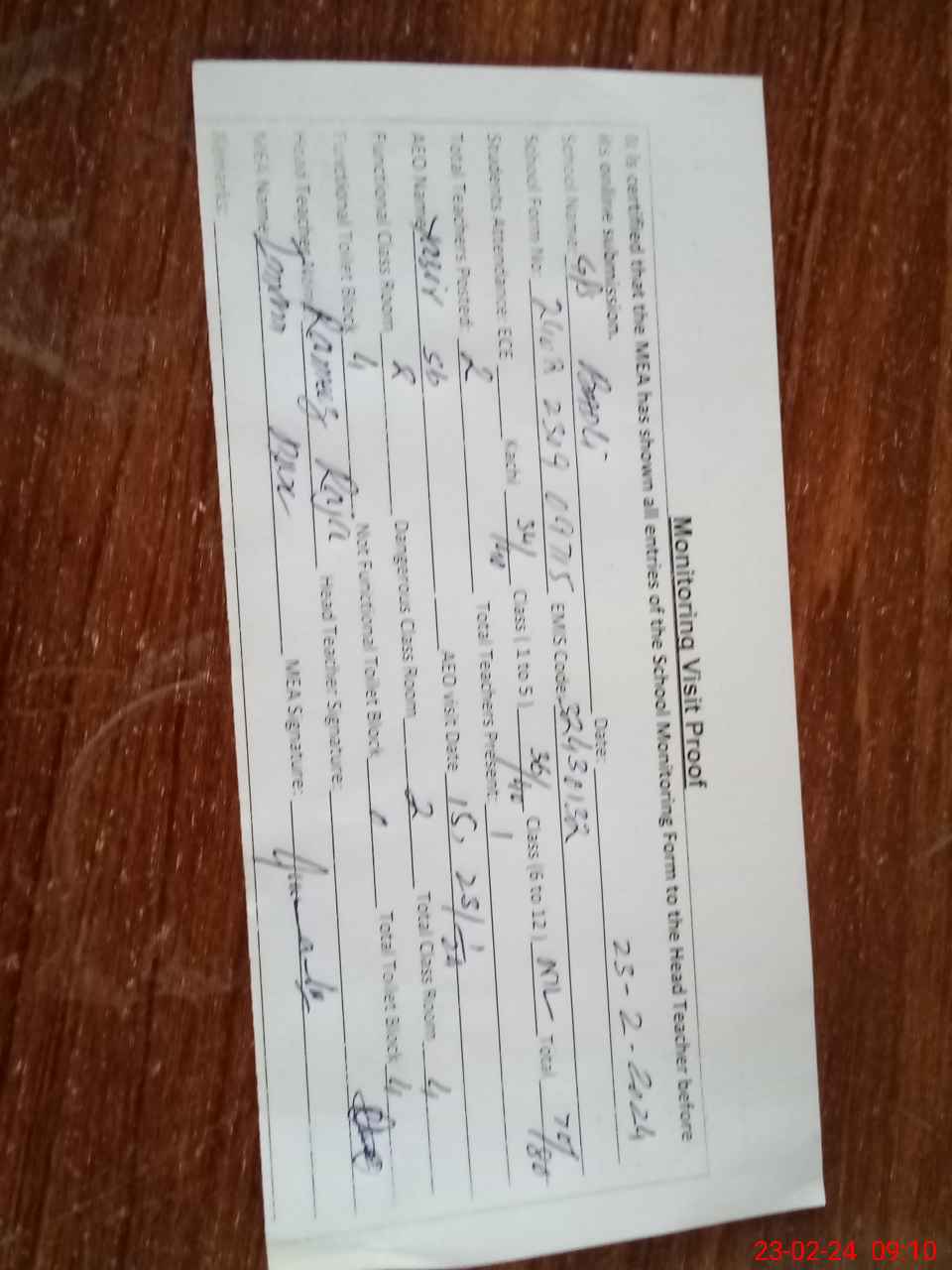 | Attendance Register | Head Teacher | MEA with School | Visit Proof |