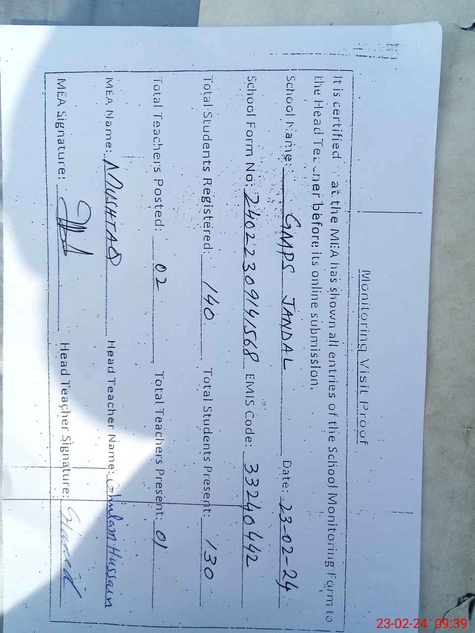 | EMIS Code: 33240442 | Name of School: GMPS JANDAL | |||