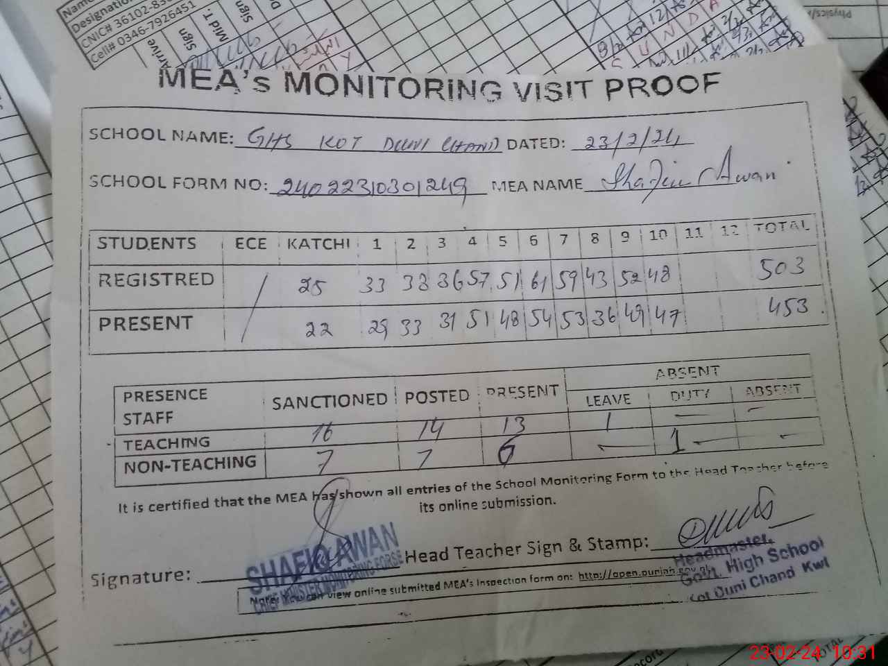 | EMIS Code: 36410024 | Name of School: GHS KOT DUNI CHAND, ABDUL HAKIM | |||
