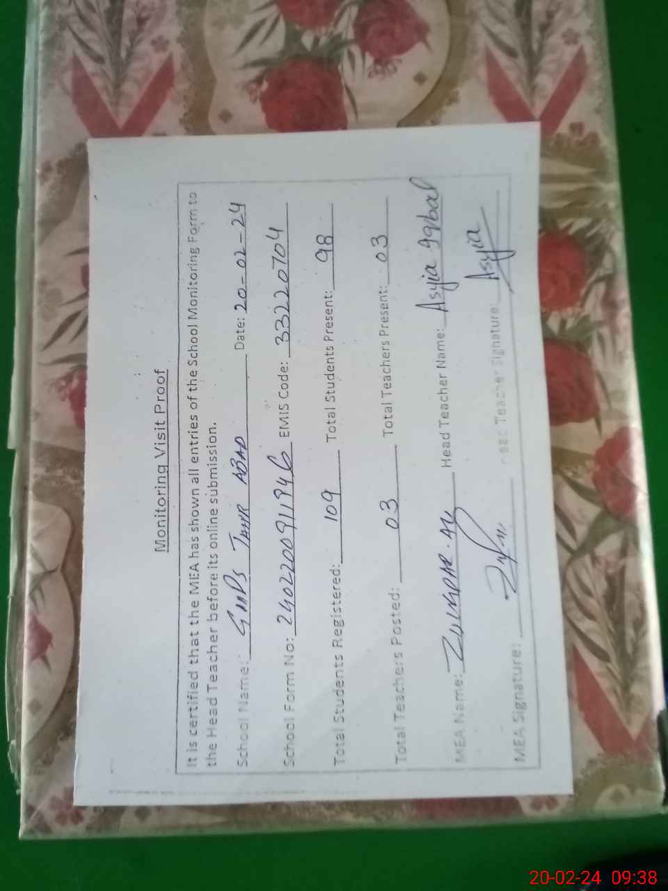 | EMIS Code: 33220704 | Name of School: GMPS TAHIR ABAD | |||