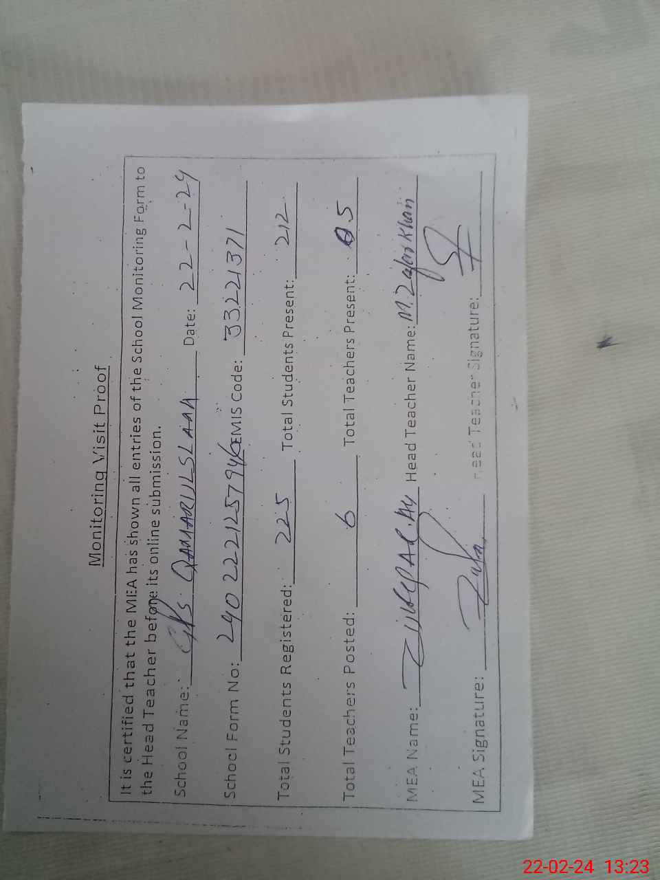 | EMIS Code: 33221371 | Name of School: GPS QAMAR-UL-ISLAM | |||