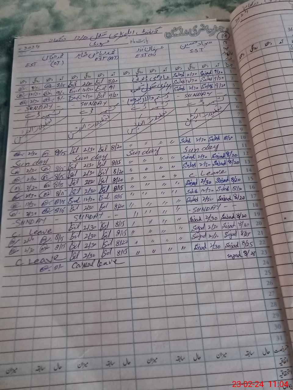 | CNIC | Full Name | Designation | R/C | Absence During Last Calender Month |