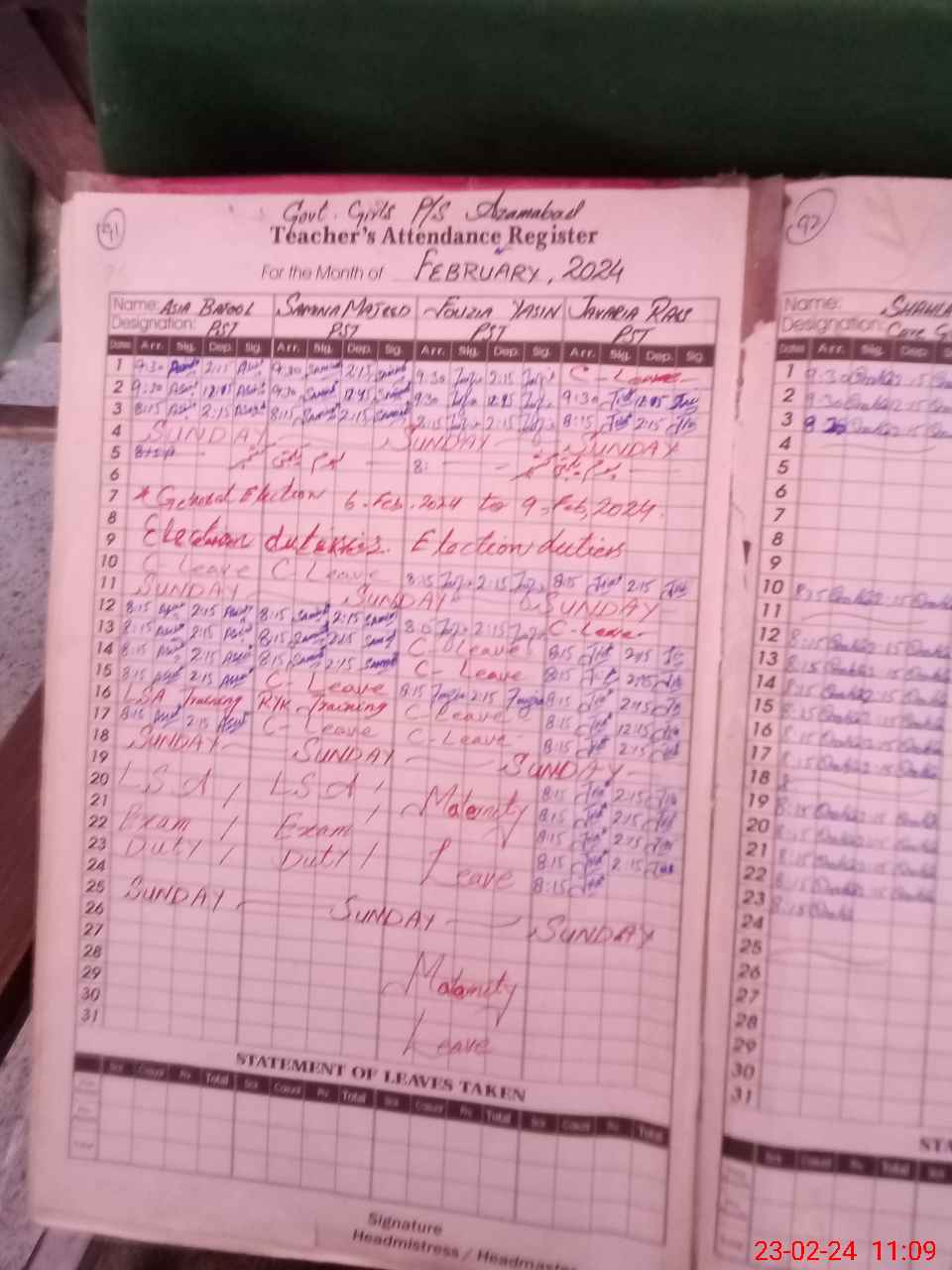 | 31**** | As**** Ba**** | PST | Regular | 2 | 0 | 0 | 0 | 0 | 0 | 0 | 0 | 2 | Exam Duty |
