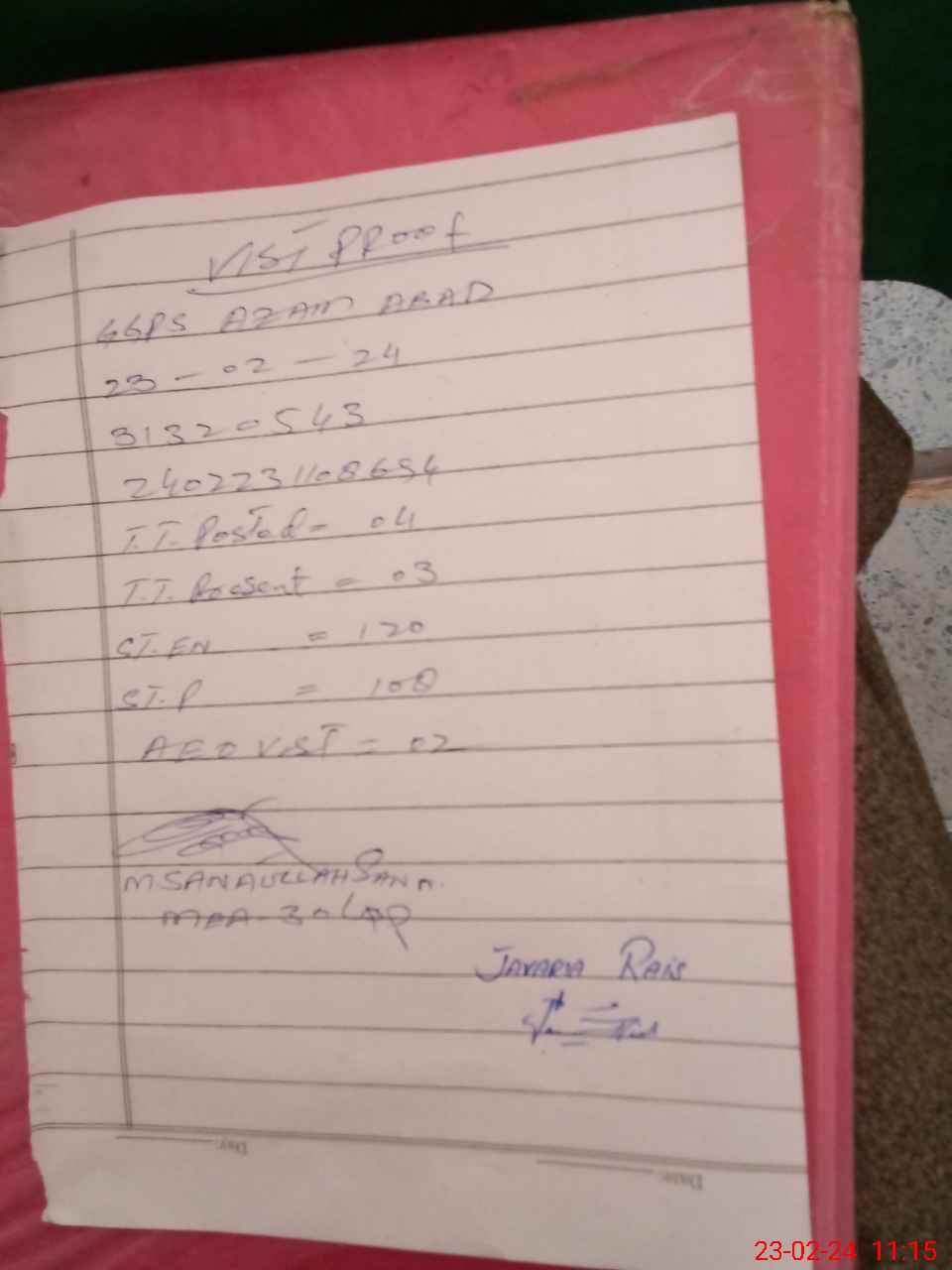 | Attendance Register | Head Teacher | MEA with School | Visit Proof |
