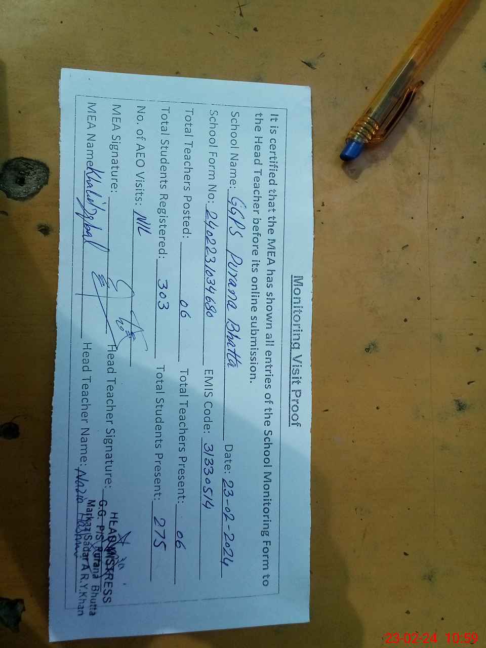 | Certified that this School was Inspected by the Undersigned MEA/DMO Today and the Information Stated Above is as Per Record. | |||||