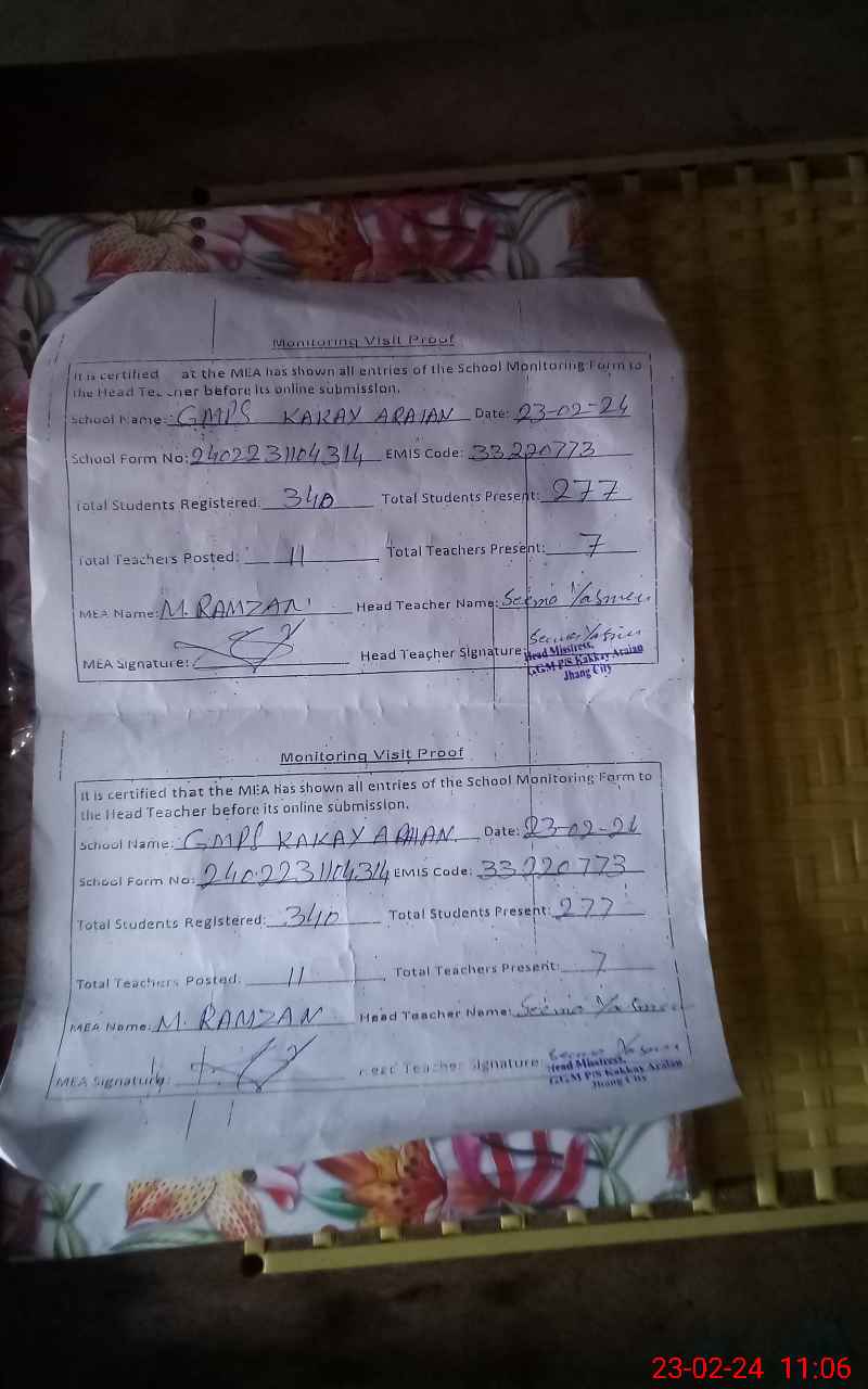 | EMIS Code: 33220773 | Name of School: GMPS KAKKAY ARAIAN | |||