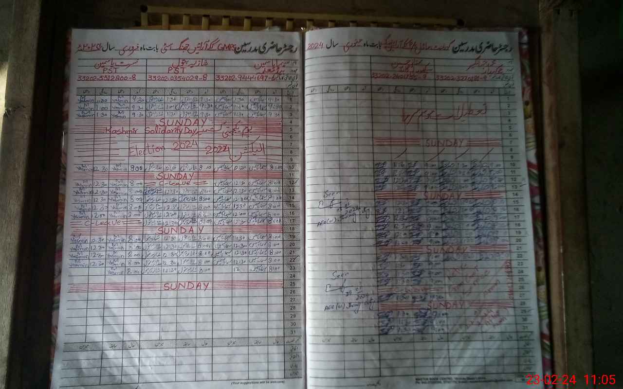 | CNIC | Full Name | Designation | R/C | Absence During Last Calender Month |