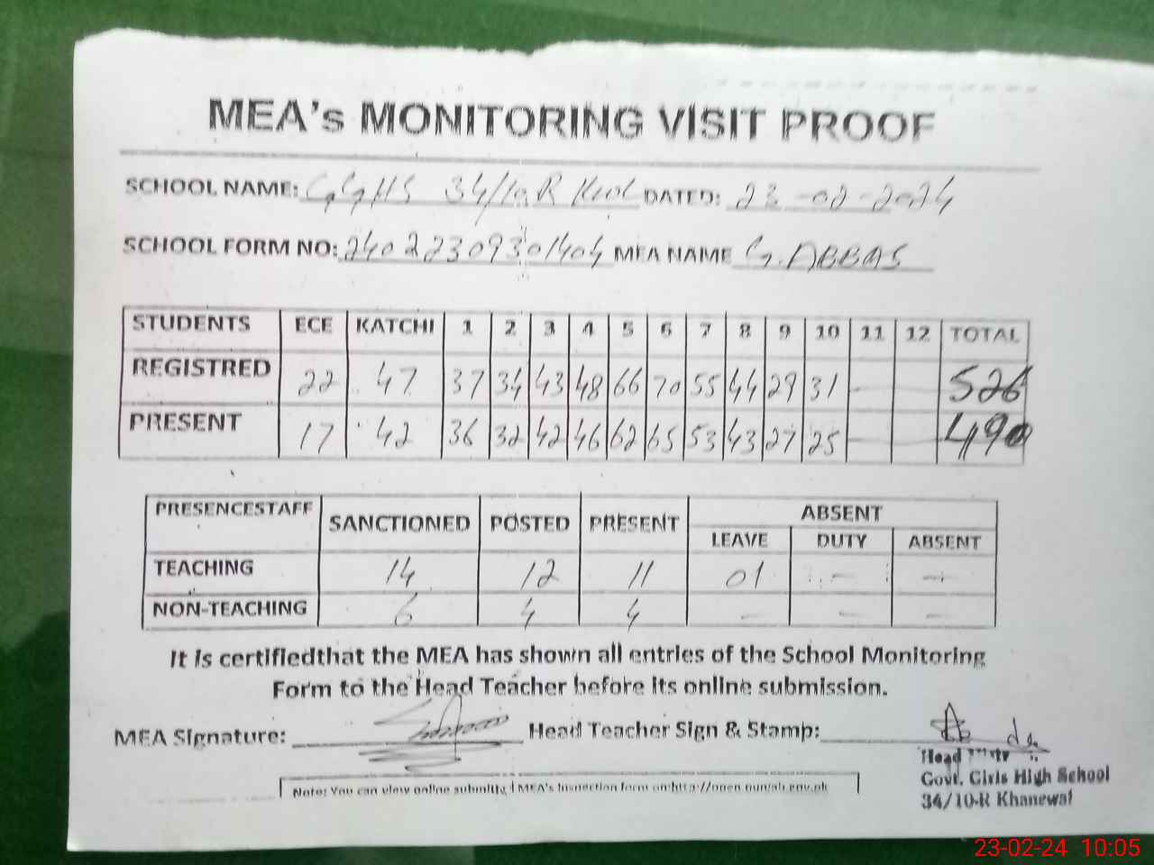 | EMIS Code: 36420115 | Name of School: GGHS 34/10-R, KACHA KHUH | |||