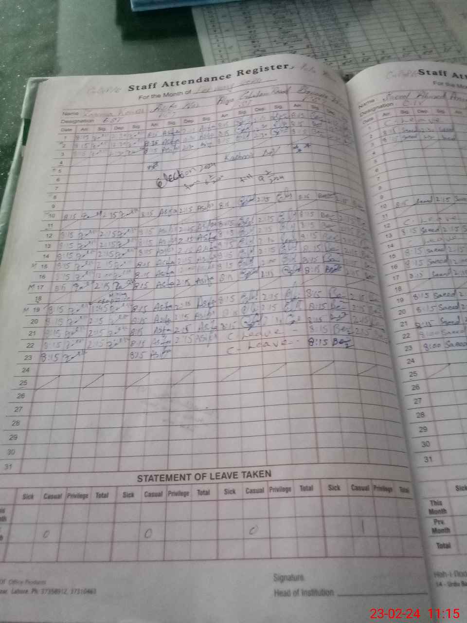 | Leave | Duty | Absent | Maternity | Medical | Ex- Pak |
