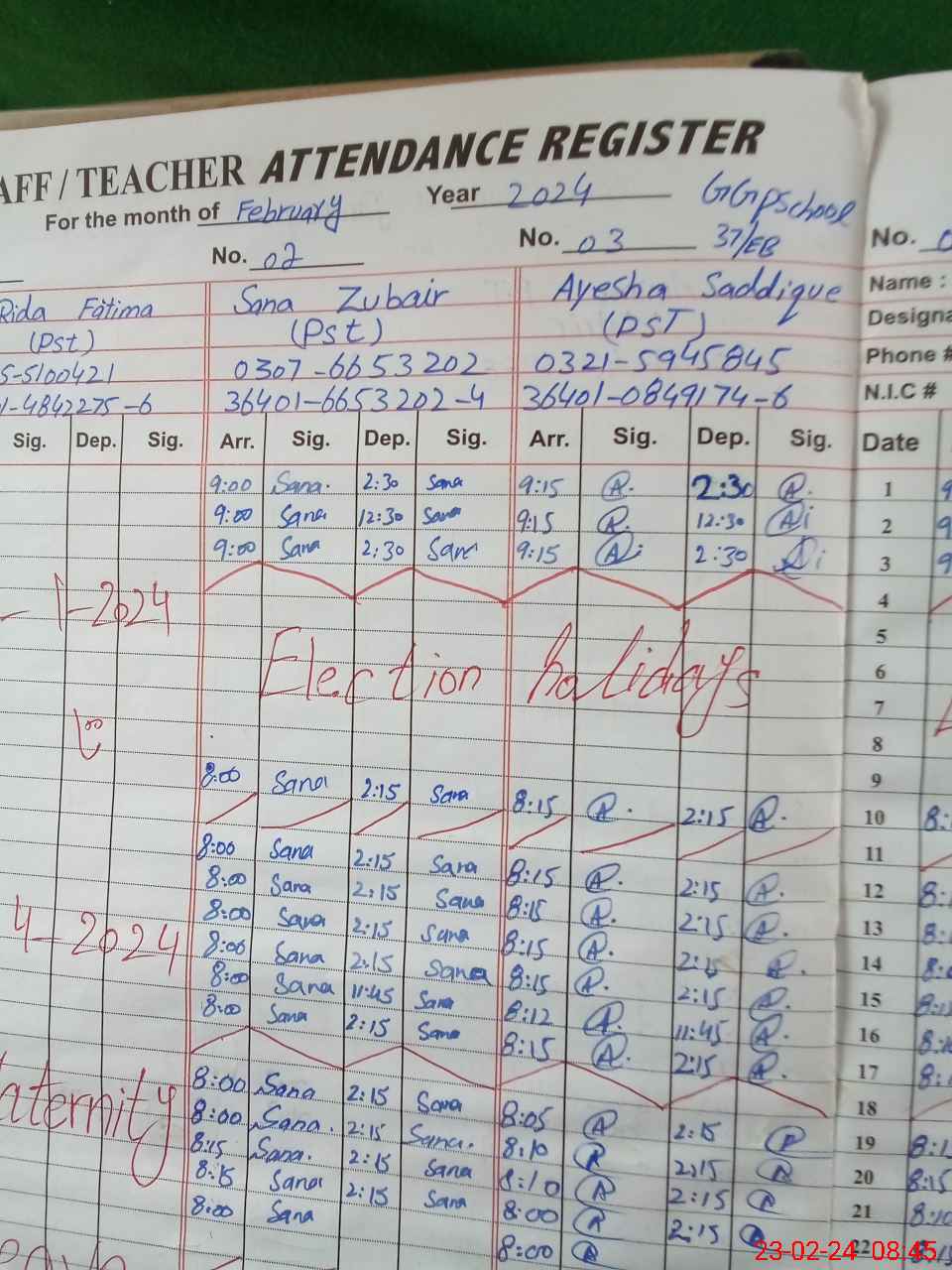 | Name: RI**** FA**** Designation: (School Headmaster's/Headmistress's) PST Phone/Cell Number: 03**** |
