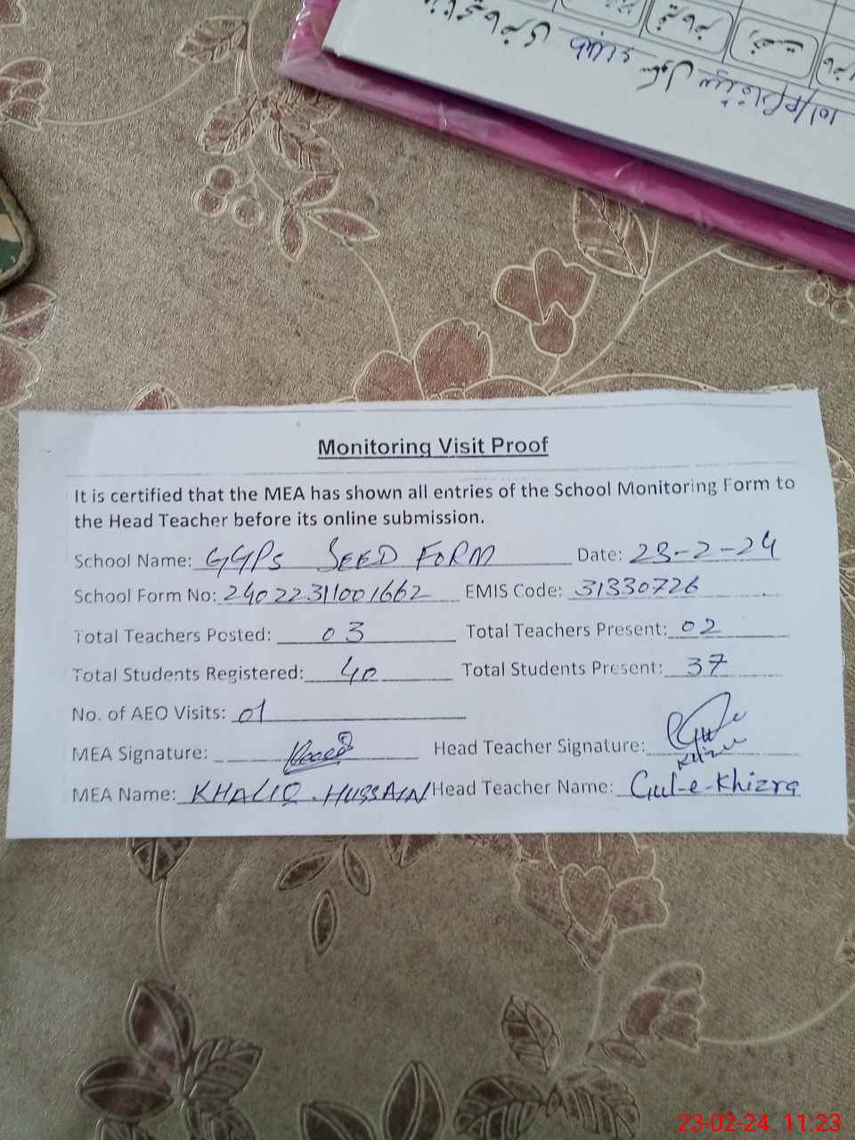| EMIS Code: 31330726 | Name of School: GGPS SEED FARM | |||