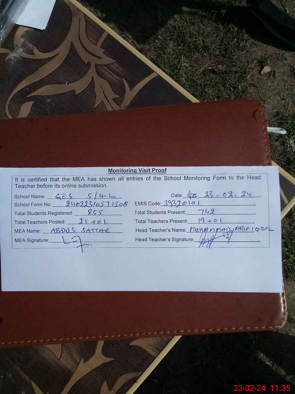 | EMIS Code: 39320101 | Name of School: GES CHAK 5/4-L | |||