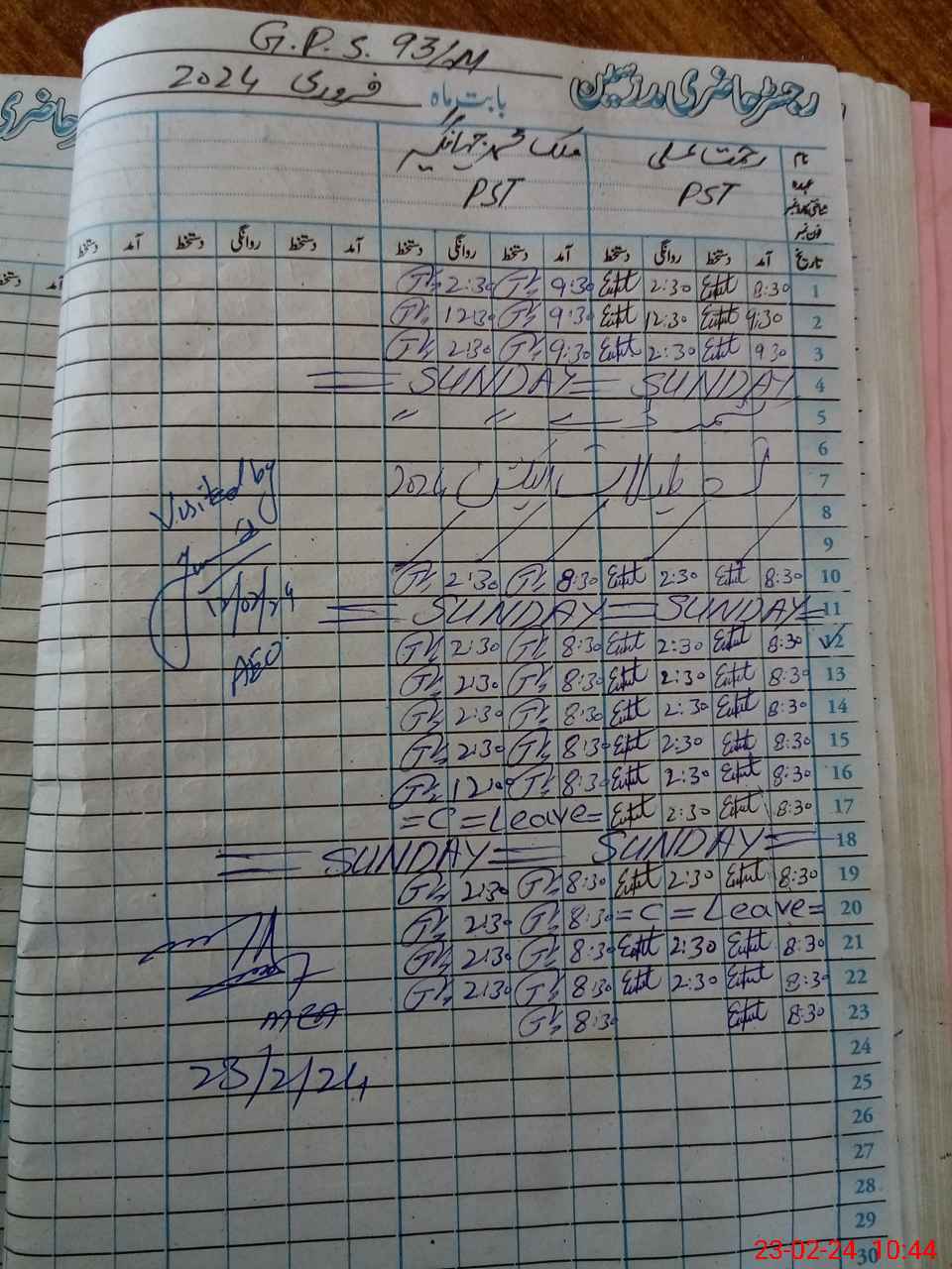 | Leave | Duty | Absent | Maternity | Medical | Ex- Pak |
