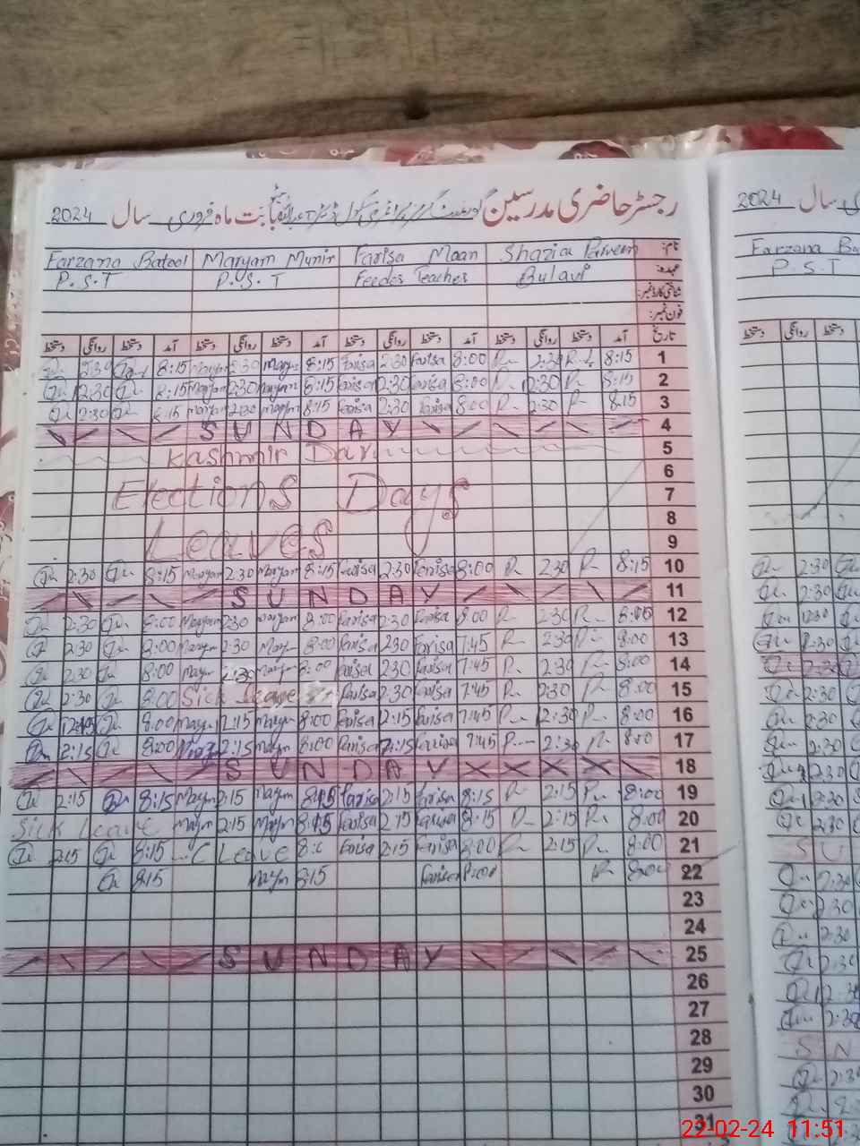| Leave | Duty | Absent | Maternity | Medical | Ex- Pak |