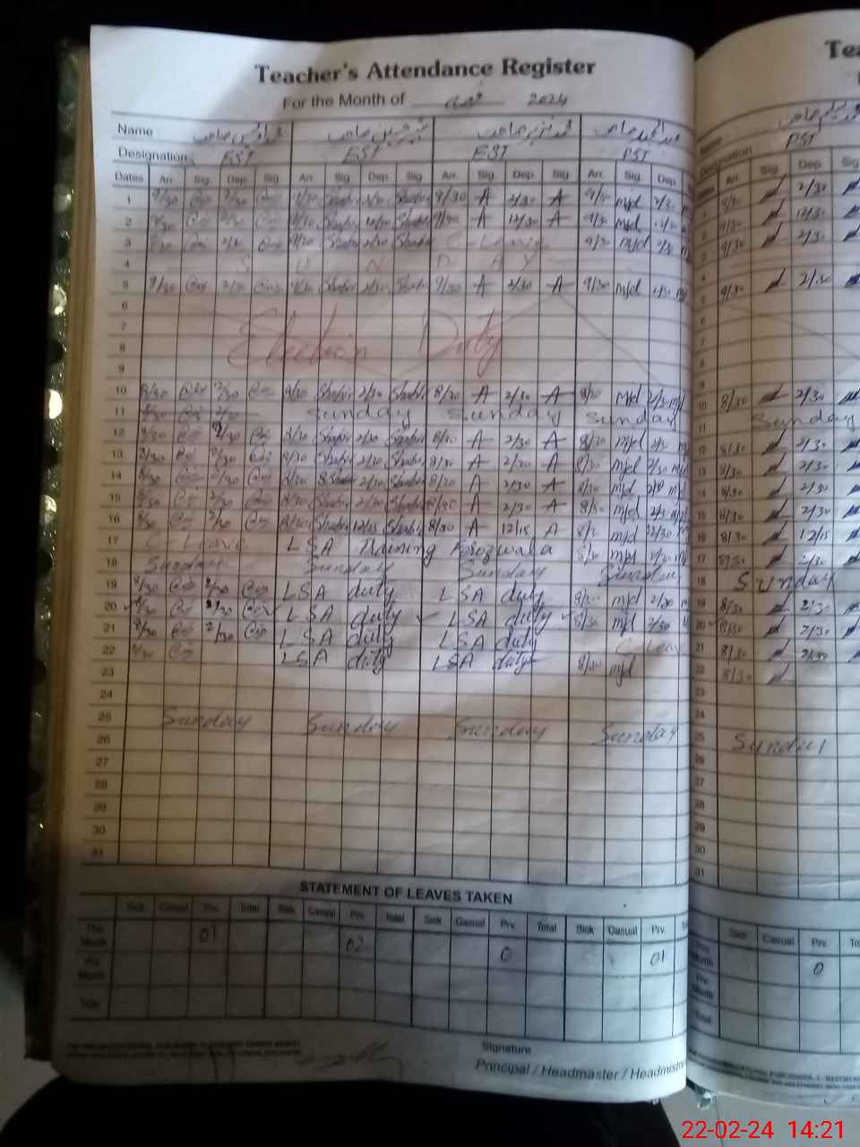 | 35**** | Ta**** Hu**** | EST(GENERAL) | Temporary | 0 | 0 | 0 | 0 | 0 | 0 | 0 | 0 | 0 | Exam Duty |
