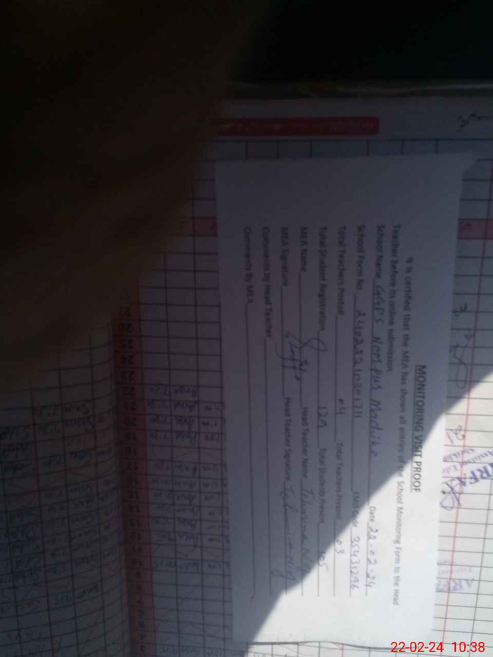 | Attendance Register | Head Teacher | MEA with School | Visit Proof |