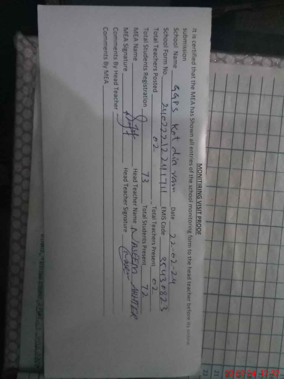 | EMIS Code: 35430823 | Name of School: GGPS KOT DIA RAM | |||