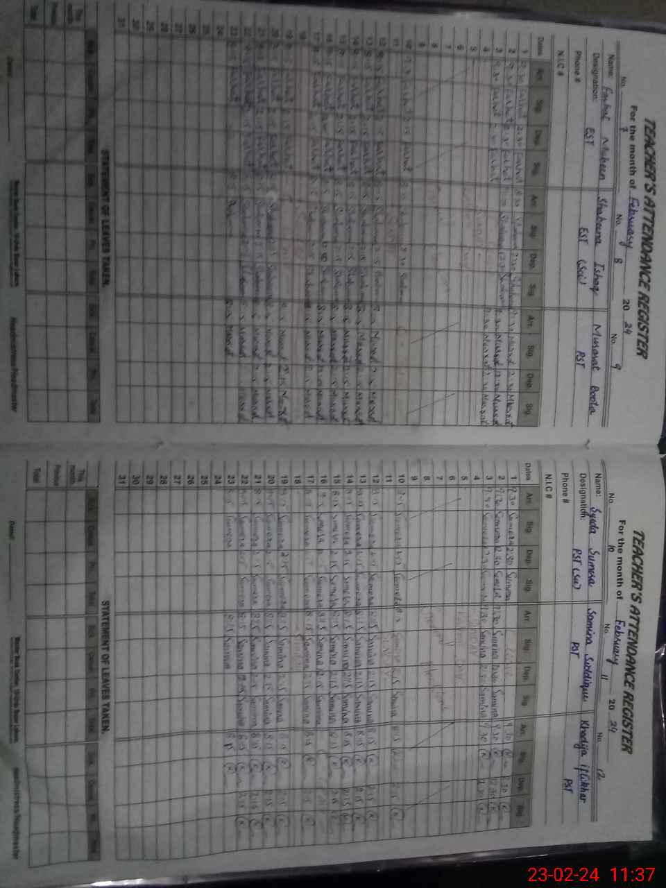 | CNIC | Full Name | Designation | R/C | Absence During Last Calender Month |